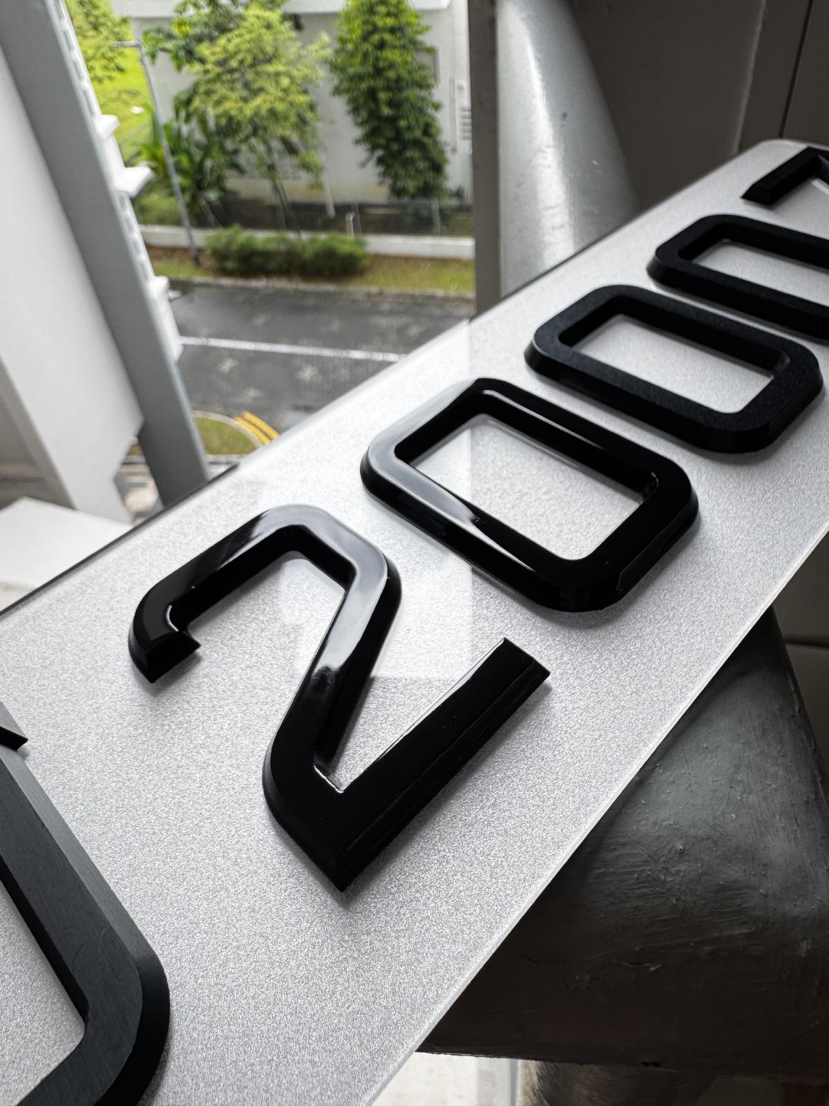 • 3D-printed, solid block characters